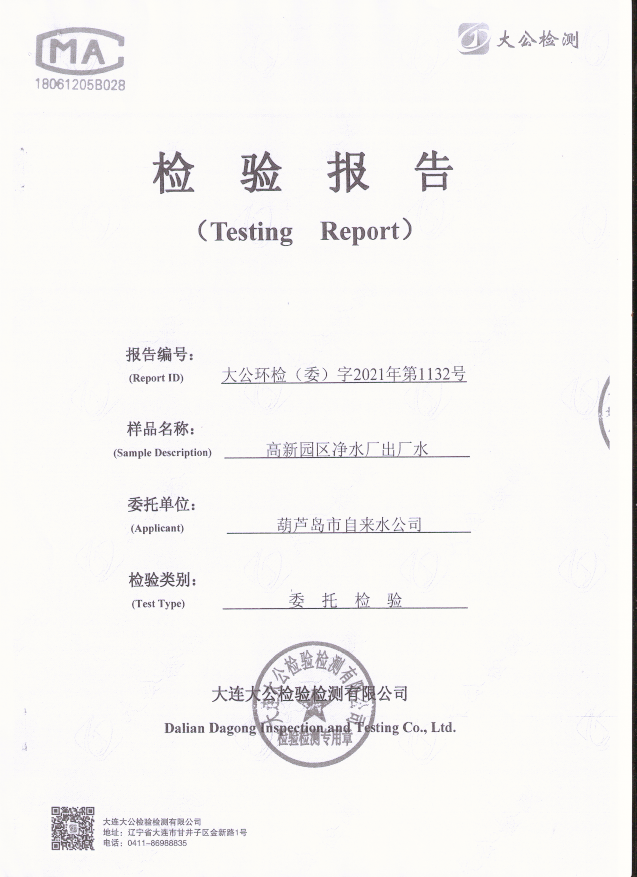 高新園區(qū)凈水廠出廠水檢驗報告