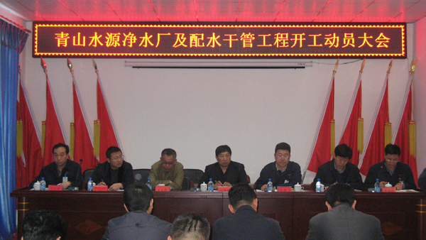 3月31日下午,公司召開青山水源凈水廠及配水干管工程開工動員大會。市住建委副主任張庭政、紀檢副書記王玉良、事業(yè)科李云峰出席會議。會議由公司黨委書記張旭濱主持。