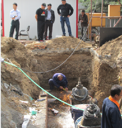 5月20日早8:00時,隨著新區(qū)泵站停水指令的發(fā)出,新建供水泵站出水管線及調(diào)試施工全面鋪開,工程總公司 搶修隊開始施工,大家齊心協(xié)力作業(yè),爭分奪秒趕工,盡可能縮短停水時間,經(jīng)過7個小時的連續(xù)奮戰(zhàn),工程總公司順利完成了DN300進(jìn)水管線和DN200、DN400出水管線連接及閥門的安裝,于當(dāng)日下午3時10分恢復(fù)了新區(qū)一、二、三、四號小區(qū)的居民供水,比預(yù)計停水時間提早了一個小時。