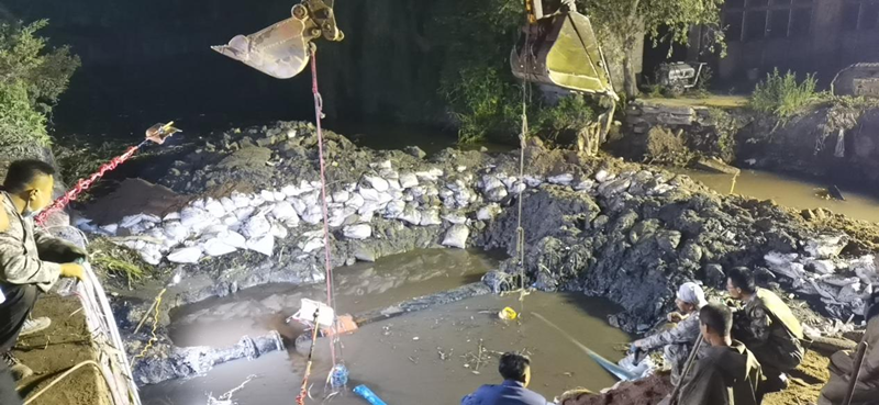 由于管道破裂處位于直徑約10米的淤泥水坑中,地勢(shì)環(huán)境非常惡劣,給搶修工作帶來(lái)了極大的難度。維修人員首先對(duì)施工地點(diǎn)進(jìn)行圍堰、降水。為防止污水倒灌進(jìn)入管線,工作人員一邊用四臺(tái)大功率水泵同時(shí)抽出圍堰內(nèi)的水,一邊控制管線泄水壓力。由于管線大,水量多,經(jīng)過(guò)4個(gè)小時(shí)的連續(xù)降水作業(yè),管線斷裂點(diǎn)才逐漸顯露出來(lái),工作人員立即對(duì)破裂部位進(jìn)行更換。夜晚涼意不斷,坑內(nèi)泥濘不堪,維修人員忍著腥臭的淤泥,不顧蚊蟲叮咬,埋頭苦干,與時(shí)間賽跑,他們不怕臟不怕累,全力以赴按下?lián)屝薜摹翱爝M(jìn)鍵”,跑出了“加速度”,經(jīng)過(guò)全體維修人員的連夜奮戰(zhàn),于當(dāng)晚23時(shí)搶修結(jié)束,23:30恢復(fù)供水,當(dāng)晚經(jīng)對(duì)西山坡6號(hào)泵房取水樣化驗(yàn)水質(zhì)完全達(dá)標(biāo)。