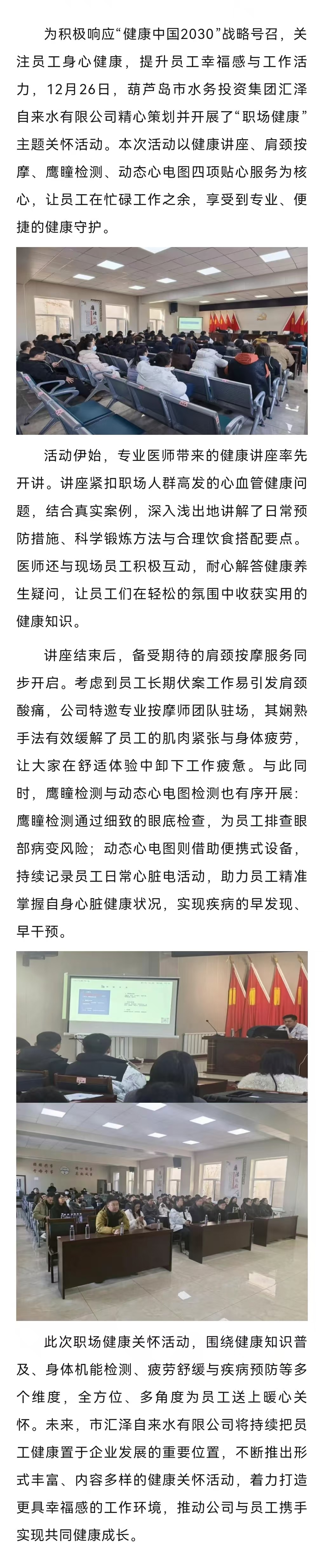 市水務(wù)集團(tuán)匯澤自來(lái)水公司開展“職場(chǎng)健康”主題關(guān)懷活動(dòng)