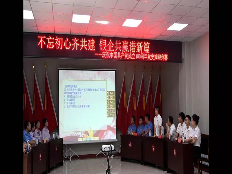 百年征程波瀾壯闊,百年初心歷久彌堅。為深入推進黨史學(xué)習(xí)教育走心走深走實,以實際行動踐行初心使命,營造學(xué)黨史、知黨情、跟黨走的濃厚氛圍。7月26日,葫蘆島市自來水公司攜手中國農(nóng)業(yè)銀行、中國銀行、中機青山公司、平山公司、烏金塘水庫共同舉辦:“不忘初心齊共建 銀企共贏譜新篇”慶祝中國共產(chǎn)黨成立100周年黨史知識競賽活動,旨在通過學(xué)習(xí)競賽形式普及黨史知識,更好的促進銀行與供水企業(yè)之間的交流與合作,為中國共產(chǎn)黨百年華誕獻禮。市國資委副主任、黨委委員單亞光,黨辦主任李海峰應(yīng)邀出席會議,各參賽單位主要領(lǐng)導(dǎo)參加會議。