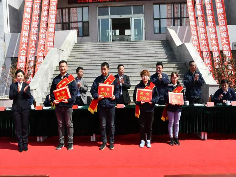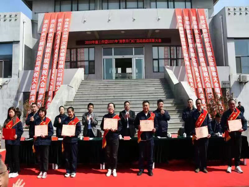 會上,公司經(jīng)理李文生代表領(lǐng)導(dǎo)班子做2020年度工作報告,總結(jié)2021年首季開門紅工作,部署2021年工作;副經(jīng)理馬旭宣讀了表彰決定,對獲獎集體和個人進(jìn)行頒獎,隨后,獲獎集體和個人代表分別發(fā)言。表彰結(jié)束后,公司經(jīng)理李文生分別與生產(chǎn)、營業(yè)及自來水工程有限公司等單位簽訂2021年經(jīng)營指標(biāo)責(zé)任狀。