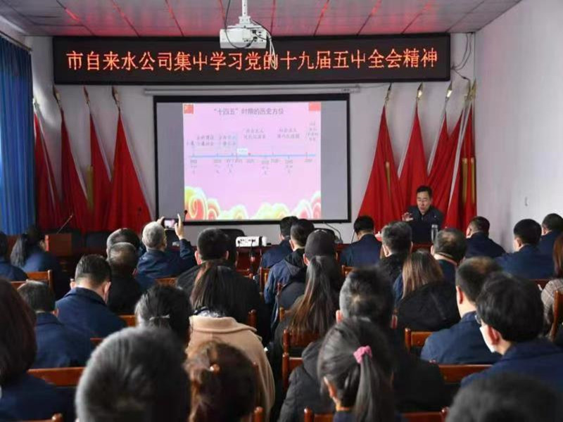 在全市興起學習貫徹黨的十九屆五中全會精神熱潮之際,11月26日下午,市自來水公司組織全體黨員集中深入學習黨的十九屆五中全會精神,邀請市委講師團副團長丁澤輝主講,確保黨中央決策部署得到不折不扣的貫徹落實。黨委書記張旭濱主持學習會議。