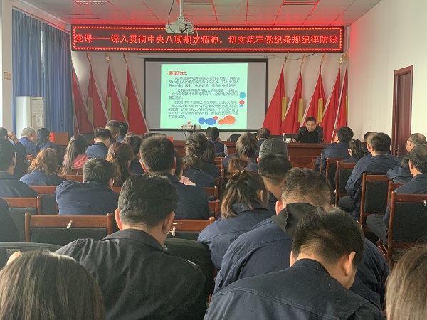 為深入開展“不忘初心、牢記使命”主題教育,進一步推進黨風廉政建設(shè)深入開展,貫徹落實中央八項規(guī)定精神,根據(jù)公司黨委關(guān)于開展“不忘初心、牢記使命”主題教育安排,10月23日下午,公司黨委特邀市委第三巡察組組長梁志遠為全體黨員干部上了一堂題為《深入貫徹中央八項規(guī)定精神,切實筑牢黨紀條規(guī)紀律防線》的專題黨課。公司黨委書記張旭濱主持會議,公司基層副職以上干部和全體黨員100余人參加了學(xué)習。