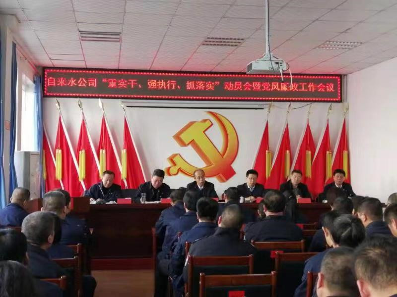 2月28日下午,自來水公司召開“重實干、強執(zhí)行、抓落實”動員會暨黨風廉政建設工作會議。市紀委駐住建局紀檢監(jiān)察組組長范思民、市住建局副局長吳銳、政治部副主任于靜泉出席會議。公司常務副經理徐學良主持會議。公司基層副職以上干部、各黨支部書記、支委及黨小組組長80余人參加了會議。