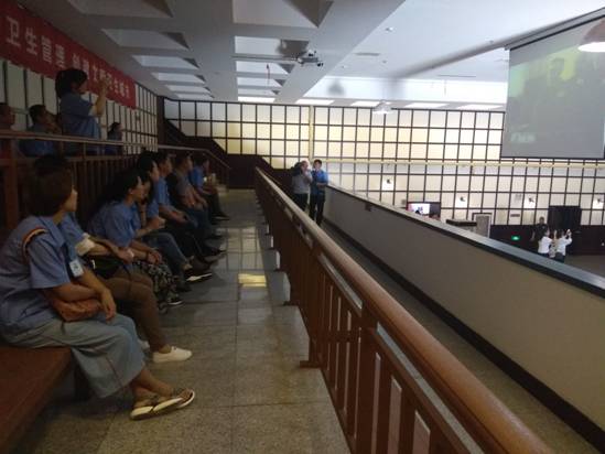 活動(dòng)的第一站是沈陽(yáng)審判日本戰(zhàn)犯特別軍事法庭舊址。據(jù)講解員介紹,它是新中國(guó)在1956年審判日本戰(zhàn)犯的法庭遺址。陳列展覽包括文字、照片、史料,文物、多媒體演示等展覽形式。展覽共分為“審判背景” “審判準(zhǔn)備”“莊嚴(yán)審判”“尾聲”等四個(gè)部分,全面展示了日本戰(zhàn)犯在沈陽(yáng)接受審判的整個(gè)過(guò)程,重現(xiàn)了1956年中國(guó)政府成立特別軍事法庭,對(duì)日陸軍中將師團(tuán)長(zhǎng)鈴木啟久、偽滿洲國(guó)國(guó)務(wù)院總務(wù)長(zhǎng)官武部六藏等36名戰(zhàn)犯進(jìn)行審判的歷史場(chǎng)景。黨員們?cè)诂F(xiàn)場(chǎng)莊嚴(yán)地舉起右拳,面對(duì)黨旗宣誓,重溫入黨誓詞,一起回顧入黨初心。宣誓結(jié)束后,隨同講解員參觀了各個(gè)展廳及復(fù)原的公審日本戰(zhàn)犯場(chǎng)景蠟像,觀看了公審日本戰(zhàn)犯的影像紀(jì)錄片,這場(chǎng)令中國(guó)人民揚(yáng)眉吐氣的審判,讓大家深刻感受到了中國(guó)對(duì)待日本戰(zhàn)犯的寬大胸懷,對(duì)祖國(guó)的敬佩之心油然而生。
