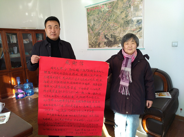 1月30日上午,家住龍港區(qū)望海寺象山社區(qū)3-13棟一單元5樓的一位70多歲的老人在女兒的陪同下,來到自來水公司,專程送來一封熱情洋溢的感謝信,代表全體住戶對自來水公司營業(yè)三分公司維修人員不辭辛苦,兩次及時(shí)維修被凍損管線,解決該樓用水問題及熱情周到的服務(wù)表示感謝。