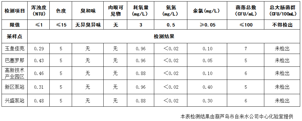 2017年9月20日葫蘆島市城市供水管網(wǎng)水質(zhì)信息
