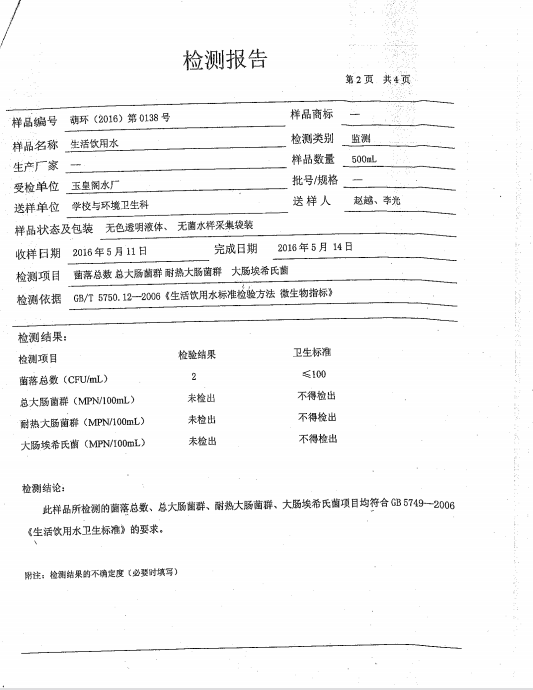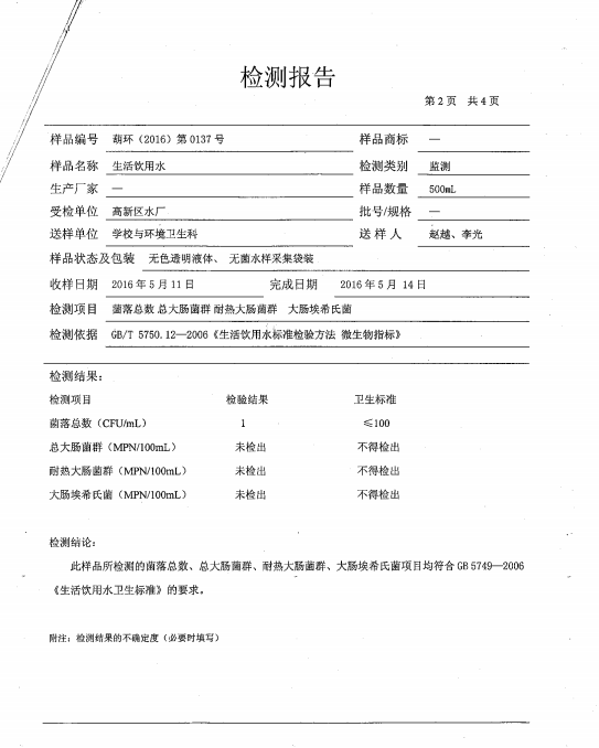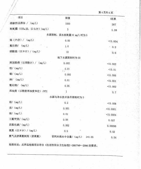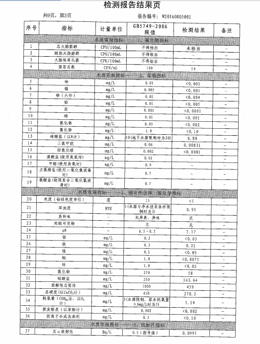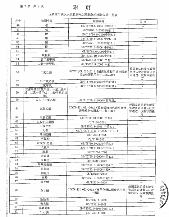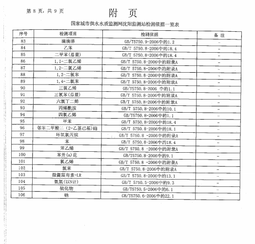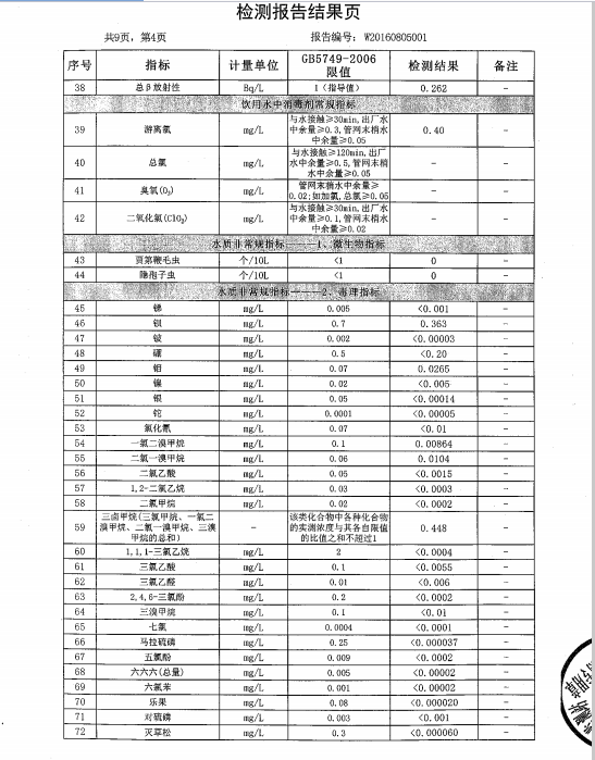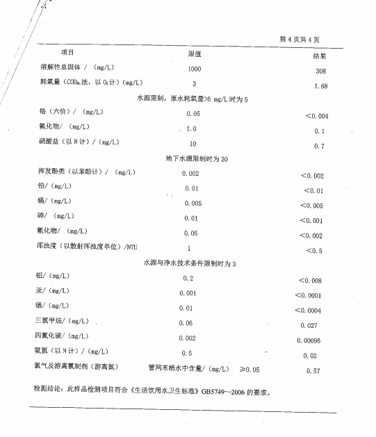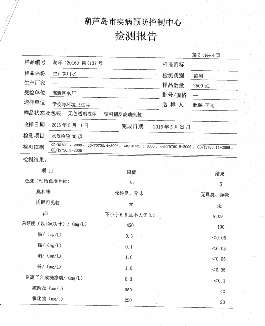 葫蘆島市自來水公司2016年水質檢測報告公示