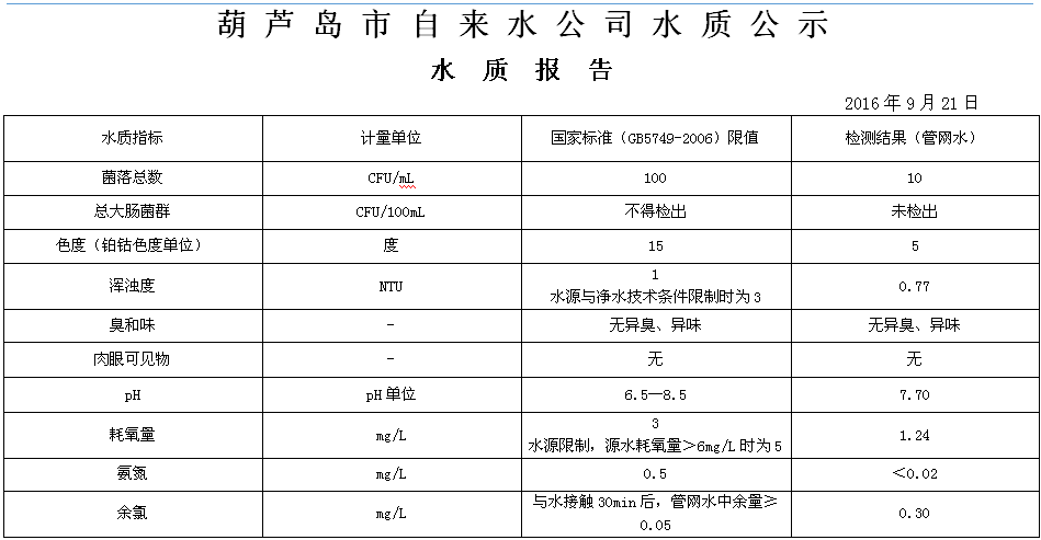 2016年9月第三周 水質(zhì)報(bào)告
